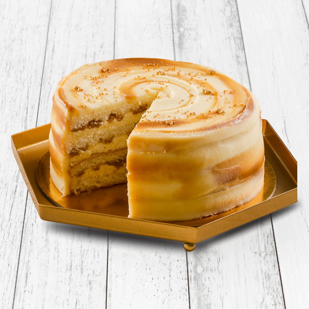 Our brand-new Salted Caramel Swirl Cake is here to add a little sparkle to your celebrations. With delicious layers of soft vanilla sponge, creamy white chocolate and swirls of salted caramel in every slice. Finished with golden stars and sprinkles, it’s a true showstopper.